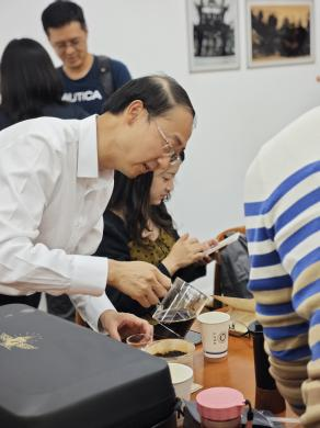 会议第三项议程,学院全体教师共同参加“咖啡文化”团建会。为感谢各位老师的辛勤付出,学院工会和学院“产学研用”中心共同策划了“高黎贡之心”咖啡文化进校园的品鉴活动。